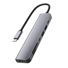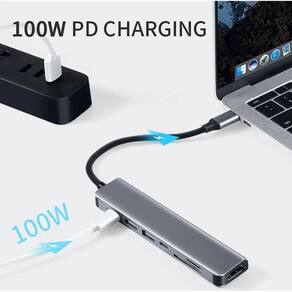 Hub estação 7x1 type-C x USB-C Pd usb 3.0 sd tf hdmi 4kAtenção: compatível somente com aparelhos com usb-cHub tipo c 7 em 1 . Com usb 3.0 hdmi e entrada para sd card/ tf cardO hdmi transmite streaming de vídeo nítido com incrível fluência. Use a porta hdmi para transmitir vídeos em alta resolução nas telas do seu monitor 4k. Simplesmente conecte um cabo hdmi ao adaptador hub tipo c ao monitor externo para uso.Transferências de dados com até 5 gbps, rápidas o suficiente para transferir filmes de alta definição em segundos.Organize seu teclado, mouse, hds externos, pen drives, impressoras, scanners, tablets, smartphones dentre outros dispositivos. Sincronize e carregue seus dispositivos móveis rapidamente. Para usar no celular é necessário que ele possua a função otg para funcionar. . Produto: adaptador 7 em 1. Interface: tipo c, hdmi, sd, tf e usb. Hdmi 2.0: 4k 30hz 1080p. Comprimento da linha: 12,5cm. Material: liga de alumínio. Conectividade: usb 3.0 e 2.0. Pd: 87w. Entrada de energia: 5v 1.5a. Potencia: 15w . 100w. Corrente: 3a . 5a. Saída de energia: 5v . 20v. Compatibilidade: notebook e alguns modelos de celular. Dimensões: 10 x 2,5 x 1cm. Peso: 50g