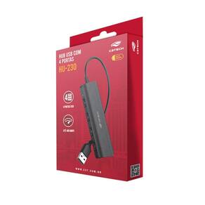 Hub USB 2.0 4 Portas HU-230 Preto O Hub USB 2.0 HU-230 da C3Tech oferece praticidade e eficiência para conectar até quatro dispositivos simultaneamente. Com velocidade de transmissão de até 480 Mbps, garante desempenho estável para transferências e uso diário. Compacto, leve e com design moderno, é ideal para otimizar conexões no trabalho ou em casa. Características Conector de entrada: USB 2.0 Portas de saída: 4 x USB 2.0 Velocidade de transmissão: até 480 Mbps Comprimento do cabo: 21 cm Material externo: ABS Revestimento do cabo: PVC Plug and Play Informações adicionais Compatível com USB 1.1 e 2.0 Compatível com sistemas Windows Dispensa fonte externa Marca: Não Informado