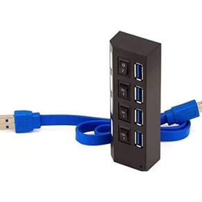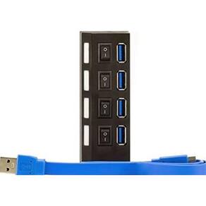 O HUB USB 3.0 tem 4 portas USB 3.0 e interruptores individuais para desliga-las. Ideal para conexões de impressoras, PenDrive ou outros periféricos USB.