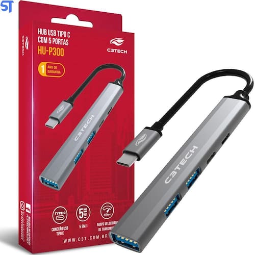 Apresentação: O HU-P300 é o adaptador lançamento da C3Tech, seu design elegante permite que se enquadre em qualquer ambiente. Ideal para conectar diversos dispositivos ao mesmo tempo. Com sua velocidade de transmissão de até 5Gbps, basta conectar e aproveitar a transferência rápida de dados. Essa maravilha conta com 1 porta USB 3.0, 2 portas USB 2.0, 1 porta USB-C e 1 porta USB-C Power delivery, ideal para recarregar seus dispositivos. Produzido com materiais de ponta, para que você tenha praticidade e durabilidade em suas tarefas.