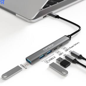 Qtde de Portas de Saída: - 1 x USB 3.0 - 2 x USB 2.0 - 1 x USB Tipo C - 1 x USB Tipo C PD Versão de USB de entrada: USB Tipo C 3.0 Velocidade de Transmissão: até 5 Gbps Carregamento rápido PD até 60W Revestimento: Alumínio Comprimento do cabo:10cm Revestimento de cabo: PVC Plug and Play