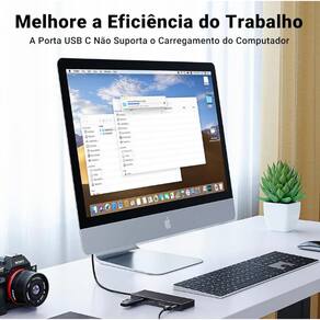 Design moderno com liga de alumínio e ABS premium, garantindo durabilidade e dissipação térmica eficiente. Seu formato ultracompacto e leve (50g) torna este hub USB-C para notebook perfeito para trabalho remoto, escritório, estudos ou uso em viagens.