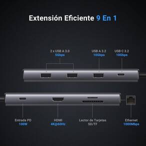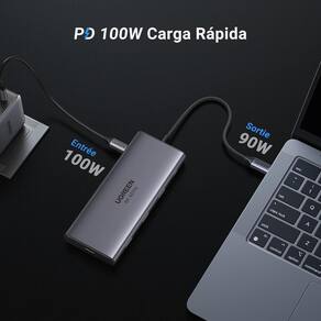 Adaptador Hub Usb-C 3.2 10Gbps Rj45 Hdmi 4K Pd 100W Cartão O Adaptador Hub Usb-C 3.2 10Gbps Rj45 Hdmi 4K Pd 100W Cartão é a solução ideal para transformar seu dispositivo host em uma estação de trabalho completa e organizada. Com 9 portas em 1, este adaptador oferece uma ampla gama de conexões para atender às suas necessidades diárias. Com uma porta HDMI 4K 60Hz, você pode espelhar ou estender a tela para uma segunda tela maior, permitindo uma experiência visual imersiva. A resolução 4K 60Hz é suportada quando o dispositivo host é compatível com o protocolo DisplayPort Alt Mode e versão 1.4 por meio de sua porta USB-C. A porta USB-A 3.2 10Gbps e a porta USB-C 3.2 10Gbps permitem transferências de dados em alta velocidade de até 10Gbps, garantindo uma verdadeira transferência de dados em alta velocidade. Além disso, o adaptador possui duas portas USB-A 3.0 adicionais, ideais para conectar periféricos como disco rígido, pendrive, mouse, entre outros. A conexão Ethernet suave é garantida pela porta RJ45, que suporta uma velocidade máxima de rede de 1000Mbps. Isso proporciona uma conexão de internet mais rápida e estável, permitindo que você desfrute de chamadas de vídeo, filmes e jogos sem atrasos. O adaptador é plug and play nos sistemas operacionais Windows 11/10/8.1/8, OS, Linux, iPadOS, iOS e Android, sem a necessidade de drivers. Além das diversas conexões mencionadas, o adaptador também possui um slot para leitor de cartão SD/TF e uma porta de carregamento USB-C PD de 100W. O leitor de cartão suporta a leitura simultânea de dois cartões, com transferência rápida de até 104MB/s. A porta de carregamento USB-C permite expandir vários periféricos enquanto carrega seu dispositivo host. Com dimensões compactas de 19,5 x 11,1 x 1,9 cm e peso de apenas 200 gramas, o Adaptador Hub Usb-C 3.2 10Gbps Rj45 Hdmi 4K Pd 100W Cartão é fácil de transportar e usar em qualquer lugar. Sua cor cinza elegante adiciona um toque moderno ao seu dispositivo.2 10Gbps Rj45 Hdmi 4K Pd 100W Cartão. Transforme seu dispositivo host em uma estação de trabalho completa e mantenha sua área de trabalho organizada.