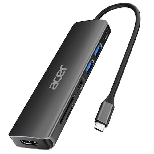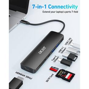 Acer Hub USB C, base USB-C 7 em 1 para HDMI, 2 portas USBA 3.1 GEN1 e 5Gbps tipo C, porta HDMI 4K, carregamento PD 100W, leitor de cartão SD, para laptops iPad Pro, MacBook Pro e mais (preto)