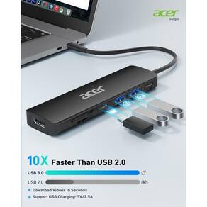 - [Hub USB C multiportas 7 em 1] O divisor USB C da Acer é feito de material de alumínio, expande uma única porta USB-C para 7 portas (1 HDMI 4K a 30 HZ, 2 USB 3.1, 1 USB-C, 1 carregamento PD tipo C, 1 compartimento para cartão MicroSD, 1 compartimento para cartão SD). O hub USB expande seu trabalho em casa, escritório ou em movimento. Hemoton Observação: os dispositivos USB-C devem suportar USB tipo C DP Alt Mode (função de transmissão de vídeo)