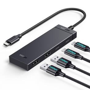 - Transferência de dados de 10 Gbps: o hub USB C 3.2 de 4 portas suporta velocidade de transferência de dados de até 10 Gbps. Isso é rápido o suficiente para transferir um arquivo de 20 GB em apenas 16,4 segundos, economizando muito seu tempo de espera.