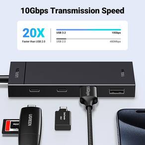 Hub USB C UGREEN, adaptador USB 3.2 4 em 1 de 10 Gbps com 2 USB-C 3.2 e 2 USB-A 3.2, extensor divisor USB C de 4 portas para MacBook Pro/Air, Pro, 15/15 Pro Max, Surface, PC, laptops e muito mais