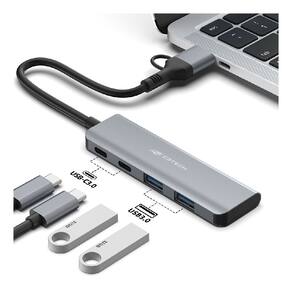 Equipado com duas portas USB-A e duas USB-C, o HU-C600GY proporciona flexibilidade para conectar uma variedade de dispositivos, independentemente do tipo de conector. A entrada reversível facilita a conexão rápida e segura, enquanto as portas de saída suportam transferências de dados em alta velocidade, ideais para sincronização de arquivos, carregamento de smartphones e uso de acessórios de áudio ou vídeo. Essa configuração multifuncional torna o hub perfeito para profissionais em movimento ou usuários domésticos que buscam otimizar seu setup de trabalho.