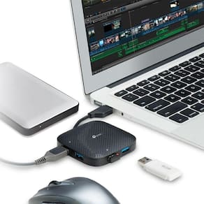 O UH400 é o seu hub USB definitivo, que conecta todos seus dispositivos portáteis através de implementação ultrarrápida com velocidades de até 5Gbps, tornando-o dez vezes mais rápido que o padrão USB Usuários podem simultaneamente plugar e utilizar 4 dispositivos USB como pendrives, mouses, impressoras, HDs externos, cabos de smartphones para carregamento ou sincronia e muito mais.