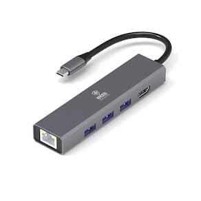 Adaptador Kross 5 em 1 Tipo C para RJ45, PD e 3x USB 3.0 – Modelo KE-UCT618