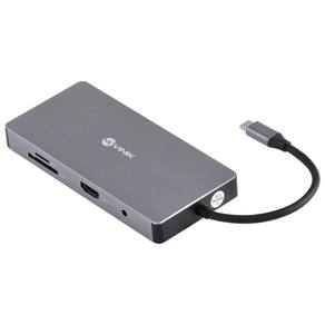 Hub Usb Tipo C Type C 10 Em 1 - 3 Usb 3.0 + Cartão Sd Tf + Hdmi + Vga + áudio P2 + Rj45 + Power Delivery (pd) 60w Hc-10 O HUB HC-10 da Vinik permite a extensão de 1 saída tipo C, ramificando para 3 portas USB 3.0, HDMI, VGA, leitor de cartão SD e TF, saída de áudio P2 3.5mm, Porta RJ45 e 1 porta USB tipo C com Power Delivery de 60W. O recurso Power Delivery permite o carregamento do dispositivo conectado mesmo com o HUB em uso. Conexão: USB tipo C / type C Saidas: 3 x USB 3.0 5Gbps HDMI 4K 30Hz VGA 1920*1080 60Hz Leitor de cartão SD e TF Type C/Tipo C com Power delivery 20V 3A (60W) Porta RJ45 10/100/1000 Áudio P2 3.5mm
