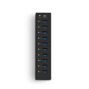 Vantec Hub USB 3.0 de 10 portas, alumínio, totalmente alimentado, montável, com todas as portas de dados e carregamento de até 1,5A, BC 1.2, adaptador de alimentação premium 12V/5A, 60W