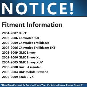 - Substituto do Buick Rainier 2004-2007- - Substituto do Chevrolet SSR 2003-2006- - Substituto do Chevrolet Trailblazer 2002-2009- - Substituto do Chevrolet Trailblazer EXT 2002-2006- - Substituto do GMC Envoy XUV 2002-2009- - Substituto do GMC Envoy XUV 2002-2006 -- Substituto para o Isuzu Ascender 2003-2008- - Substituto para o Oldsmobile Bravada 2002-2004- - Substituto para o Saab 9-7X 2005-2009-