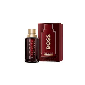 O icônico frasco do BOSS The Scent é revestido com o mesmo vidro laqueado vermelho-escuro de sua contraparte feminina, refletindo a intensidade do aroma sedutor em seu interior. O frasco é coberto por uma tampa dourada quente com um luxuoso acabamento acetinado, refletindo os detalhes metálicos brilhantes na embalagem externa. Ouse com BOSS The Scent