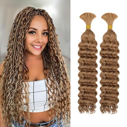 - [Cabelo humano ondulado profundo loiro 6-8 cabeça inteira] O cabelo humano encaracolado para tranças boho está disponível em feixes de cabelo humano de 35 a 61 cm, molhado e ondulado de 35 a 40 cm, 1 pacote é de 40 g, 45 a 50 cm, 1 pacote é de 50 g, 55 a 61 cm. Pacote de 1 cm tem 60 g. O cabelo humano para trançar mulheres negras tem comprimento e peso reais, qualidade garantida. Se você gosta de cabelo humano de cabeça inteira para tranças boho de 45,7 cm, recomendamos que você compre de 6 a 8 mechas de cabelo humano trançado de ondas profundas para tranças boho sem nós.