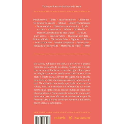 É o 13º livro e o quarto romance de Machado de Assis. Novamente o título traz um nome feminino e uma intriga voltada para as relações amorosas, tendo como horizonte o casamento. Neste caso, a jovem protagonista se chama Lina Garcia, mais conhecida pelo nome doméstico de Iaiá. Na armação do enredo, que inclui muitas viravoltas, nota-se a profusão de referências aos sentimentos não expressos, às causas ocultas, às intenções não explicitadas. Nesse ambiente sufocante, os laços afetivos são atravessados por diferenças brutais, que envolvem recursos materiais, poder, status e autonomia.