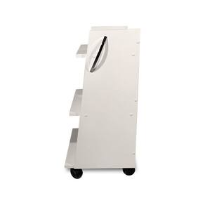 Possui rodízio deslizante Puxador em metal cromado 0,16 cm Fácil limpeza e desinfecção da superfície do móvel