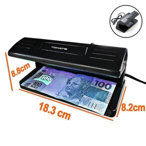 Especificações técnicas: -lâmpada em led uv de 4w -voltagem: 110v / 220v bivolt automático não utiliza pilhas -possui botão liga/desliga; -dissipador de calor interno; -tamanho já para atender as novas notas;