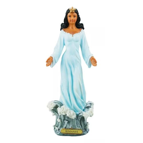 Enfeite decorativo de Iemanjá com 30,5 cm de altura. Detalhes e cores realistas. Material: resina