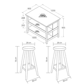 As duas banquetas que acompanham a bancada foram projetadas com o mesmo cuidado e atenção aos detalhes. Com estrutura robusta, proporcionam conforto e estabilidade durante as refeições.