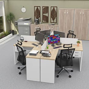 Invista no seu bem-estar e na sua equipe com a Ilha em L com gaveta da Linha Office Netmobil!