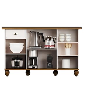 A ilha de cozinha é um móvel compacto e funcional, perfeito para cozinhas com pouco espaço. Ela conta com um compartimento amplo para armazenar utensílios de cozinha, e também possui gavetas e prateleiras para organizar seus itens.