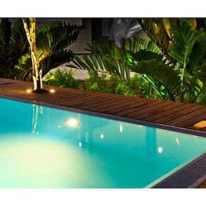 A luminária para piscina 9W Iluctron foi desenvolvida em policarbonato e seu diâmetro é de 80mm. De fácil instalação, é ideal para uso submerso (IP68) e oferece alta luminosidade, alcançando uma área de até 6m² de iluminação. Pode ser aplicada em escadas, prainhas de piscinas, piscinas (alvenaria, vinil ou fibra) e chafarizes. O modelo com sistema RGB oferece até 12 diferentes tonalidades de luz.