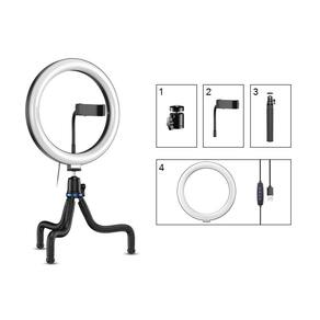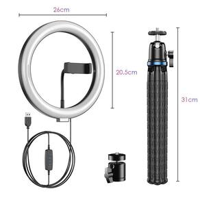 Iluminador Circular de Led Ring Light 26cm com Tripé Flexível - Apexel O ring light é um iluminador circular de led muito utilizado por maquiadores, youtubers e vloggers em geral que buscam melhor a qualidade das suas imagens, principalmente para selfies, retratos e vídeos, já que seu efeito uniformiza a pele, não faz sombras na imagem e realça os olhos. Uma boa iluminação pode colaborar muito para capturar fotos ou vídeos com qualidade superior, seja com um celular ou uma câmera profissional. Os anéis de led vêm se mostrando uma excelente opção para quem deseja uma iluminação de qualidade a preços mais acessíveis. Com design simples e fácil de operar, este modelo da Apexel possui diâmetro de 26cm 10 polegadas , 120 luzes de led, 10 níveis de ajuste de brilho e três tipos de cor de luz, com temperatura da cor que pode ser ajustada de 3000K a 6500K. Fabricado em plástico ABS, ele acompanha ainda um tripé flexível com aproximadamente 29cm de altura e mais um adaptador giratório, que permite ajuste em diversas posições e capturar na horizontal ou vertical. Conta ainda com um suporte para celular e um cabo usb para recarregar o iluminador e controlar as principais funcionalidades ajustes, ligar, desligar, etc . Especificações Técnicas: Marca: Apexel Modelo: APL-FL10JJ10Y Material: ABS + aço inoxidável Quantidade de Leds: 120 Diâmetro externo: 26cm / 10 polegadas Diâmetro interno: 20cm Potência: 8-10W Níveis de ajuste brilho: 10 Tipos de cor da luz: 3 Temperatura da cor: 3000K a 6500K Voltagem: 5V Suporte de celular: de 6,7 até 9,5cm Altura Tripé: aproximadamente 29cm Altura Tripé fechado : 31cm Compatibilidade: Compatível com celulares com largura de tela de 6,7 até 9,5cm. : de 90 dias para defeito de fabricação. Itens inclusos: 1 x Iluminador Circular de Led 1 x Tripé Flexível 1 x Cabo Usb com Controlador de Ajustes 1 x Adaptador Giratório 1 x Suporte para Celular Observações: Não acompanha celular ou itens não especificados acima. Imagens meramente ilustrativas. Marca: Não Informado Ean: 1000001278216