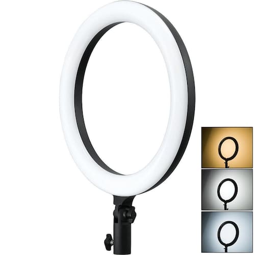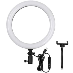 O Iluminador Circular LED Godox LR120 12 / 30cm Ring-Light Bi-Color Studio Preto com potência de 10W, apresenta uma luminária de formato circular com uma temperatura de cor que varia de 3.000 a 6.000K para corresponder a outros Iluminadores Ring-Light, condições de luz ambiente ou apenas para expressão criativa. A Luz de Led Circular pode ser montada em uma Tripé de Iluminação Light Stand vendidos separadamente , permitindo que você faça produções através dela para um efeito suave e sedoso, quase sem sombras. Ideal para selfies, um suporte para smartphone está incluído. Um bônus é a forma circular exclusiva da luz refletida nos olhos de quem está sendo fotografado. Você pode fazer ajustes de cor e intensidade de luz a partir de um botão simples no aparelho, ajustá-lo de maneira flexível e fácil para escolher o efeito de iluminação desejado. O Iluminador Ring-Light Bi-Color Godox LR120 Black funciona com alimentação USB 5V / 2A , o que significa que você pode levá-lo para qualquer lugar e operá-lo em um computador, laptop ou adaptador de energia.Uma Luz, Multi AplicaçõesEle renderiza uma iluminação suave e uniforme e cria um refletor perfeitamente circular nos olhos do assunto, o que torna o retrato mais atraente e realista. Atendendo a todas as suas necessidades em diferentes ocasiões, esta luz é a melhor parceira para suas fotos e vídeos ao vivo.Obtenha qualquer efeito de IluminaçãoVocê deseja LEDs bicolores integrados de 3000K a 6000K e faixas de brilho regulável LR120 de 10% 100% e excelente CRI 90. Você pode ajustá-lo de maneira flexível e fácil para escolher o efeito de iluminação desejado.Suporte Celular/SmartPhoneAcompanha Suporte estilo ganso de Celular/SmartPhone para Telefones de 5.7 a 8.7centímetros, compatíveis com a maioria dos smartphones com ou sem case, como IOS 12 / 11 /X / 7 Plus, 7, 8, 8 Plus, X, 6, 6s, 5, 5s, 4, 4s / Samsung Nota 8, S8 / S9, entre outros.Ideal e extremamente eficaz para a Fotografia Macro, Fotografia Médica, Odontológica, Científica, Hobby e para a Iluminação/Fotografia de Produções de Maquiadores, Preenchendo de Iluminação, Retrato, Moda, Arte de Casamento, Fotografia de Propaganda, Gravação de Vídeo, Vlogs, Vídeo para Youtube, Selfies, Live Streaming, e muito mais. Tripé de Iluminação não Acompanha, Vendido Separadamente