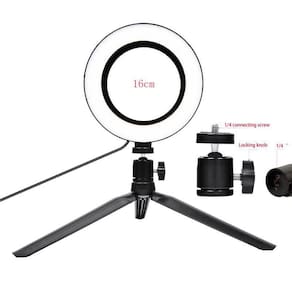 Iluminador ring light de 16 centímetros 6,5 polegadas , desenvolvido para maquiadores, fotógrafos, cinegrafistas, youtubers e etc, que buscam uma ótima maneira de iluminar com perfeição. Você pode ajustar o ângulo da iluminação por possuir um suporte articulado. É possível controlar as diferentes temperaturas de cores através do controle de ajuste que vai de 3500k à 5500k. Na frente dos leds tem um filtro difusor para suavizar a luz espalhando a luz com maior uniformidade.