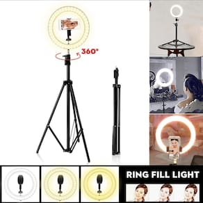 Iluminador Led Circular 10 Ring Light Live 26Cm Usb Com Tripé E Suporte De Celular O Iluminador Led Circular 10 Ring Light Live 26cm USB com Tripé de Iluminação e Suporte de Celular com Ajuste de cor de 3500 à 5500K e 15W de Potência foi desenvolvido para o público que busca uma maneira prática, fácil, e portátil de ter uma iluminação de qualidade Seja para fins profissionais ou uso residencial. Você pode ajustar o ângulo da luz ajustando a articulação de ângulo, você pode montar seu celular ou sua câmera no centro do Iluminador de Led Circular.Este Iluminador de Led Circular 10 Ring Fill Light Live USB Bilvot 110V-220V com Tripé de Iluminação e Suporte de Celular conta com uma estrutura circular leve e prática de manusear, peso aproximado de 500 gramas, contando com um total de LED intensidade regulável que oferecem alta qualidade em sua luminosidade e intensidade do brilho ajustável de 0 a 100%. Iluminador Ring Ligth LED 10 polegadas de 26 centímetros possui fixado em sua estrutura um suporte para câmeras e outros dispositivos e um suporte inferior para encaixe em tripés de iluminação, sendo adaptável para permitir ajustes em angulações de 360 graus.Plugue USB Projetado com um Plugue USB Bilvot 110V-240V com comprimento de 200centímetros, você pode conectá-lo em seu PC de mesa, energia móvel, plugue de carga ou seu soquete USB a qualquer hora que você quiserBase com Cabeça Ball Head , Tripé de Iluminação e Suporte de Celular/SmartPhone Vem com Cabeça Ball Head de sapata fria para apoiar a rotação de 90graus ou 360 graus da luz do anel; Pode ser como lâmpada de mesa ou lâmpada de assoalho como você gosta. Adequado para sala de estar, sala de estudo, quarto do bebê, banheiro ou escritório. Tambem acompanha Tripé de Iluminação com altura Mínima de 70cm e Máxima de 1.8m. Já o Suporte de Celular/SmartPhone para Telefones de 5.7 a 8.7centímetros, compatíveis com a maioria dos smartphones com ou sem estojo, como IOS X / 7 Plus, 7, 8, 8 Plus, X, 6, 6s, 5, 5s, 4, 4s / Samsung Nota 8, S8 / S9.Principais Características: Led com Vida útil: 15.000 horas com 15W de Potência A temperatura de três cores pode ser alterada à vontade: diferentes efeitos de iluminação de acordo com diferentes ambientes, pode ser ajustado branco, amarelo quente e branco quente O suporte é estável e não escorrega: o é feito um tripé longo e grosso, o material é firme e durável, e o encolhimento é conveniente. Controlador de potência Dimerizavel pré estabelecido com 10 opções que variam de 0 - 100%. IRC 90. Suporte flexível para Celular/SmartPhone ou câmera, Tripé de Iluminação com Altura Máxima de 1.8m e Mínima de 70cm e Cabeça Ball Head que lhe permite direcionar o iluminador para ângulo de até 90 graus. Carregamento via USB 5V Bivolt 127V/ 220V suporte de Celular/SmartPhone para Telefones de 5.7 a 8.7centímetros, compatíveis com a maioria dos smartphones com ou sem estojo, como IOS X / 7 Plus, 7, 8, 8 Plus, X, 6, 6s, 5, 5s, 4, 4s / Samsung Nota 8, S8 / S9. recomendado e extremamente eficaz para a macro fotografia, fotografia médica, odontológica, científica, hobby e para a iluminação/fotografia de produções de maquiadores, preenchendo a luz dentro de casa, retrato, moda, arte do casamento, fotografia de propaganda, gravação de vídeo, vlogs, equipamento de vídeo para youtube, retratos, selfies, Live Streaming, e muito mais.