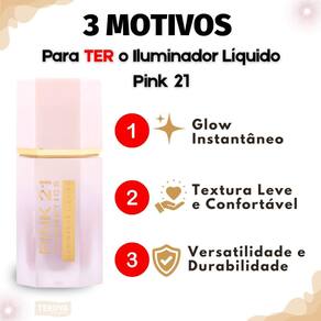 Com uma fórmula fina e cintilante, o Iluminador Líquido Pink 21 proporciona um brilho intenso e natural, criando um efeito luminoso incrível. Ideal para todos os tipos de pele, ele garante um acabamento impecável e uma luminosidade que encanta.
