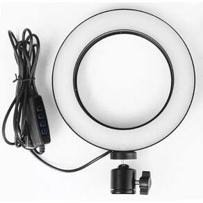 Acompanha: 1x Iluminador circular 1x Mini ballhead 1x Mini tripé Você pode: Ajustar o ângulo da iluminação por possuir um suporte articulado. É possível controlar as diferentes temperaturas de cores através do controle de ajuste que vai de 3500k à 5500k. Na frente dos leds tem um filtro difusor para suavizar a luz espalhando a luz com maior uniformidade, desenvolvido para maquiadores, fotógrafos, cinegrafistas e etc, que buscam uma ótima maneira de iluminar com perfeição. A alimentação do iluminador é através de cabo Usb não acompanha adaptador de tomada e não possui bateria interna recarregável , você pode utilizar um adaptador de tomada de celular para ligar ou conectar no Usb do computador ou outro equipamento que forneça 5v Usb. O cabo Usb deverá estar sempre ligado para funcionar. O é através de encaixe padrão de tripés de rosca. O mini tripé também serve para utilizar em outros equipamentos de até 1kg de peso, como projetores, celulares e etc. É recomendado e extremamente eficaz para a macro fotografia, fotografia médica, odontológica, científica, hobby e para a iluminação/fotografia de produções de maquiadores. Fácil de usar, durável e de pouco peso, facilitando o transporte.