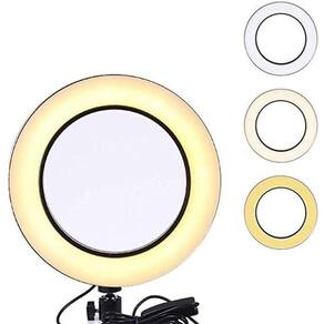 Iluminador Ring Light 16Cm Usb Led Misto 3500K 5500K + Tripé Iluminador Ring Light de 16 centímetros (6,5 polegadas), desenvolvido para maquiadores, fotógrafos, cinegrafistas e etc, que buscam uma ótima maneira de iluminar com perfeição. Você pode ajustar o ângulo da iluminação por possuir um suporte articulado. É possível controlar as diferentes temperaturas de cores através do controle de ajuste que vai de 3500k à 5500k. Na frente dos leds tem um filtro difusor para suavizar a luz espalhando a luz com maior uniformidade.