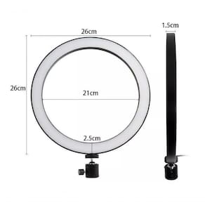 Luminador de LED Ring Light - 10 polegadas, é indicado para profissionais no ramo da beleza, como maquiadores e cabeleireiros, ou para fotógrafos que buscam ampliar a iluminação de seus estúdios fotográficos, sendo muito utilizado para criação de fotos de produtos, devido a sua iluminação fiel às cores e imagens, garantindo suavidade e realce nos elementos a serem fotografados.