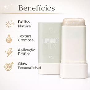 O Iluminador Stick da Jasmyne entrega brilho na medida certa com praticidade total. Com textura cremosa e acabamento cintilante, ele desliza suavemente sobre a pele e proporciona um glow natural, realçando os pontos altos do rosto com sofisticação. A embalagem em bastão facilita a aplicação direta na pele e permite retoques rápidos a qualquer hora do dia. Sua fórmula leve e confortável se adapta a todos os tipos de pele, permitindo construir camadas sem marcar ou pesar. Ideal para iluminar com facilidade e deixar a maquiagem com aquele toque radiante e fresh.