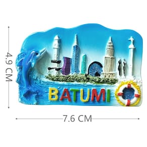 Material: Resina Tamanho: 7,6 x 4,9 cm Peso: 50 g Ímã de geladeira 3D vibrante que mostra a bela paisagem costeira de Batumi, Geórgia, completa com um golfinho, pontos turísticos icônicos e texto colorido de “BATUMI”. Feito de resina de alta qualidade, esse ímã durável apresenta detalhes intrincados pintados à mão que capturam a essência do charme costeiro de Batumi. O tamanho compacto (7,6 x 4,9 cm) o torna perfeito para decorar geladeiras, armários, quadros brancos ou como lembrança de viagem exclusiva. Um ótimo presente para quem já visitou ou adora Batumi, perfeito para colecionadores ou interessados na cultura georgiana e nas cidades costeiras. Ideal para adicionar um toque da atmosfera vibrante de Batumi à sua cozinha, escritório ou como lembrança decorativa.