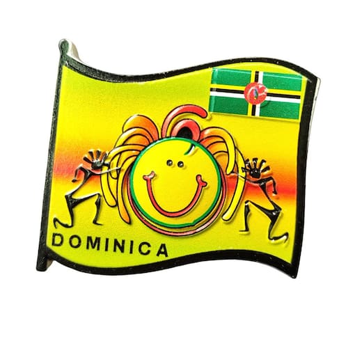 Material: Resina Tamanho: 6,5 x 5,8 cm Peso: 50 g Imã de geladeira de resina 3D vibrante com a alegre bandeira da Dominica e o design de rosto sorridente. Durável e leve, esse ímã colorido representa o charme e a cultura únicos da ilha. Lembrança perfeita para quem já visitou Dominica ou para quem adora viajar pelo Caribe. Ideal para adicionar um toque divertido à sua geladeira, armário ou espaço de escritório com um toque caribenho. Tamanho compacto (6,5x5,8 cm) e leve (50g), fácil de colocar em qualquer superfície magnética sem causar danos.