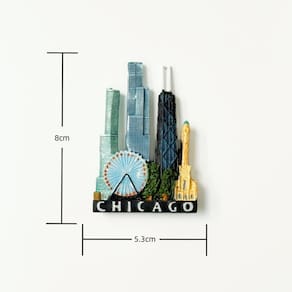 Material: Resina Tamanho: 5,3 x 8 cm Peso: 50 g Design icônico de Chicago Landmark: apresenta uma representação 3D detalhada do famoso horizonte de Chicago, incluindo arranha-céus notáveis, a roda gigante e monumentos históricos. Material de resina de alta qualidade: feito de resina durável, esse ímã é resistente e leve, perfeito para exibir fotos, obras de arte ou notas importantes. Ímã de lembrança exclusivo: uma lembrança indispensável para quem ama Chicago ou já visitou a cidade, adicionando um toque de charme a qualquer geladeira, quadro branco ou espaço de escritório. Compacto e elegante: com dimensões de 5,3 x 8 cm e pesando 50 g, esse ímã se encaixa facilmente em qualquer superfície magnética, trazendo uma explosão de cores e personalidade ao seu espaço. Perfeito para decoração de casa e escritório: uma peça decorativa maravilhosa para cozinhas, escritórios ou qualquer superfície de metal, permitindo que você mostre seu amor pela Windy City.