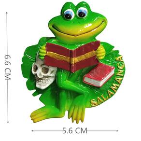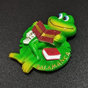 Material: Resina Tamanho: 5,6 x 6,6 cm Peso: 50 g Design divertido e exclusivo: este peculiar ímã de geladeira apresenta um sapo verde segurando um livro, com uma caveira e folhas coloridas, tudo no cenário de Salamanca, Espanha. Artesanato em resina de alta qualidade: feito de resina durável, o ímã é pintado à mão para obter cores vibrantes e duradouras e detalhes intrincados, tornando-o uma lembrança especial da Espanha. Lembrança perfeita de Salamanca: uma lembrança encantadora para lembrar sua visita a Salamanca, mostrando a cultura única da cidade de uma forma divertida e caprichosa. Decoração versátil: ideal para uso em geladeiras, quadros brancos, armários e outras superfícies magnéticas, adicionando um toque espanhol a qualquer espaço doméstico ou de escritório. Leve e durável: com apenas 50 g, esse ímã é fácil de fixar e não danifica as superfícies, tornando-o uma adição prática à sua coleção.