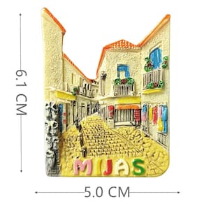 Material: Resina Tamanho: 5x6,1 cm Peso: 50 g Design autêntico de Mijas: este ímã de geladeira apresenta um charmoso design 3D das ruas vibrantes de Mijas, Espanha, capturando a essência da vida colorida de sua vila. Artesanato em resina de alta qualidade: feito de resina durável, esse ímã mostra detalhes finos, incluindo ruas de paralelepípedos, varandas coloridas e o nome “MIJAS” na parte inferior. Lembrança ideal: Uma linda lembrança da pitoresca cidade de Mijas, na Espanha, perfeita para quem adora vilas mediterrâneas ou já visitou a região. Perfeito para exibição: adiciona um toque da cultura espanhola à decoração de sua cozinha, escritório ou casa, tornando-a uma excelente peça decorativa para qualquer espaço. Compacto e leve: mede 5x6,1 cm e pesa 50g, facilitando a aderência a qualquer superfície magnética, de geladeiras a quadros brancos.