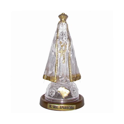 Imagem Nossa Senhora Aparecida Padroeira Do Brasil. Nossa Senhora da Conceição Aparecida, popularmente chamada de Nossa Senhora Aparecida, é a padroeira do Brasil. Venerada na Igreja Católica, Nossa Senhora Aparecida é representada por uma pequena imagem de terracota de Nossa Senhora da Imaculada Conceição, atualmente alojada na Catedral Basílica de Nossa Senhora Aparecida, localizada na cidade de Aparecida, em . Sua festa litúrgica é celebrada em 12 de outubro, um feriado nacional no Brasil desde 1980, quando o Papa João Paulo II consagrou a basílica, que é o quarto santuário mariano mais visitado do mundo. É a Rainha e Padroeira do Brasil. Tenha em sua casa, empresa ou igreja essa linda Imagem da Nossa Senhora Aparecida. Detalhes: 13 cm de altura; 7 cm de diâmetro; Base de Plástico na cor ouro envelhecido; Imagem de acrílico; Detalhes dourados. Tenha em sua casa, empresa ou igreja essa linda Imagem da Nossa Senhora Aparecida, a padroeira do Brasil. Marca: Não Informado