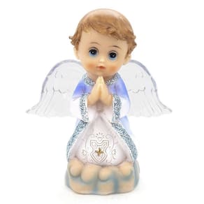 Imagem Anjo da Guarda Azul Rezando com Led Resina 12 cm Anjos, do latim angelus: São seres celestiais e espirituais, conservos de Deus que servem como ajudantes ou mensageiros. Anjo da guarda: Segundo as crenças cristãs, há intercessão e proteção dos anjos do início ao final da vida. salmos 90, 10-13 Dimensões: altura: 13 cm - Largura: 10 cm - Profundidade: 6 cm Dimensões aproximadas do produto. Produto pintado a mão, podendo sofrer variações de cores Marca: Amém Decoração Religiosa Ean: 6988100786632