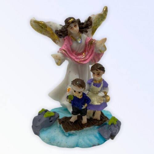 Imagem Anjo Da Guarda Em Rosa Escultura Resina 07 cm
