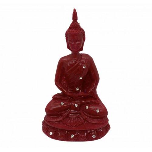 Imagem Buda Meditando Vermelho Escultura Resina 13 cm
