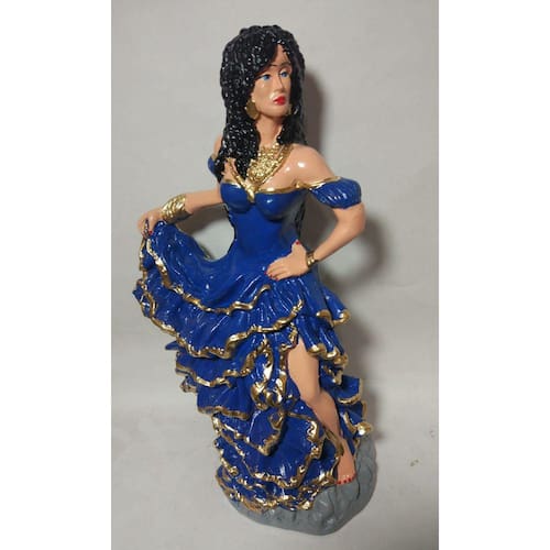 Imagem Cigana 7 Saias Rica Azul Estatua Gesso 20 Cm