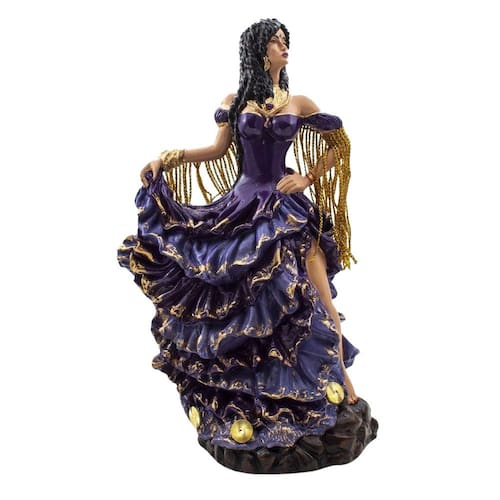Imagem Cigana Luxo Roxo Resina 25 cm Cigana: Conhecido por ser um povo nômade, faz deles entidades que ajudam nas mudanças na vida das pessoas. Dimensões: altura: 26 cm - Largura: 16 cm - Profundidade: 12 cm Dimensões aproximadas do produto. Produto feito a mão, podendo sofrer variações de cores. Camasi, guimarães, guimaraes, Marca: Não Informado