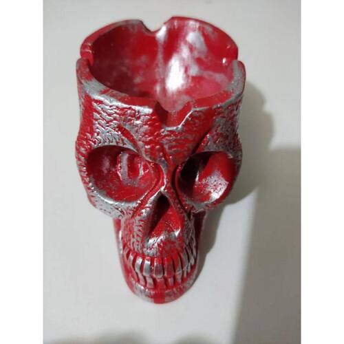 Imagem Cinzeiro Cranio Vermelho Escultura Gesso Estatua 20 Cm