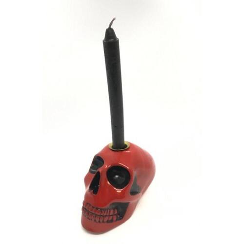Imagem Crânio Porta Vermelho Velas Escultura Resina 10 cm