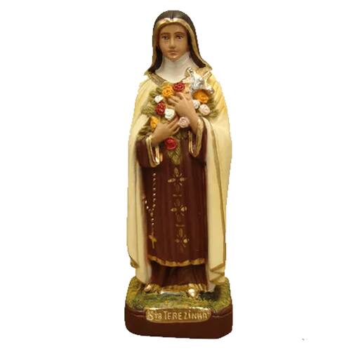 Santa Terezinha - Imagem de Santa Terezinha de 20cm feita em gesso cerâmico resinado ou resina super-resistente, junto com outros materiais selecionados para dar à sua imagem um alto padrão de qualidade e durabilidade.
